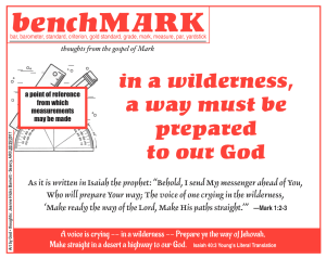 That is what has brought me to this place—a feeling of distress on the verge of hopelessness at times, a journey from knowing everything and being firmly convinced of my positions to the unrecognizable here and now . . . a place where I intend to pull from the experiences of myself and others to see if I can discover, or re-discover, a BENCHMARK, a point of reference from which measurements may be made—a foundation to lend stability to a heart tossed to and fro.