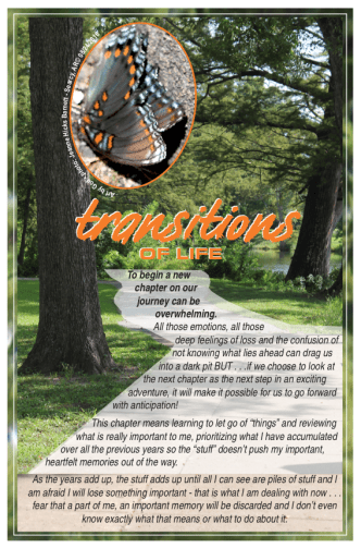 Overwhelmed—the word that comes to mind when I look around and try to figure out HOW to move forward but that can help me see the need to take “baby steps” in each part of the process and