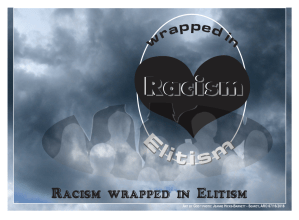 “Elitism” began being used in the 1950s as the struggles between “whites” and “blacks” became more obvious and led into the 1960s with many confrontations to establish control of society (KKK and white supremacy groups against Martin Luther King Jr., President John F Kennedy/Lyndon Johnson, and many others)—I lived through this time and would have denied being racist although I was a supporter of George Wallace and, as a high school student, listened to his speeches that encouraged pride in my race and my need to protect myself from the dark enemy of integration and all efforts to take away what was “mine.”