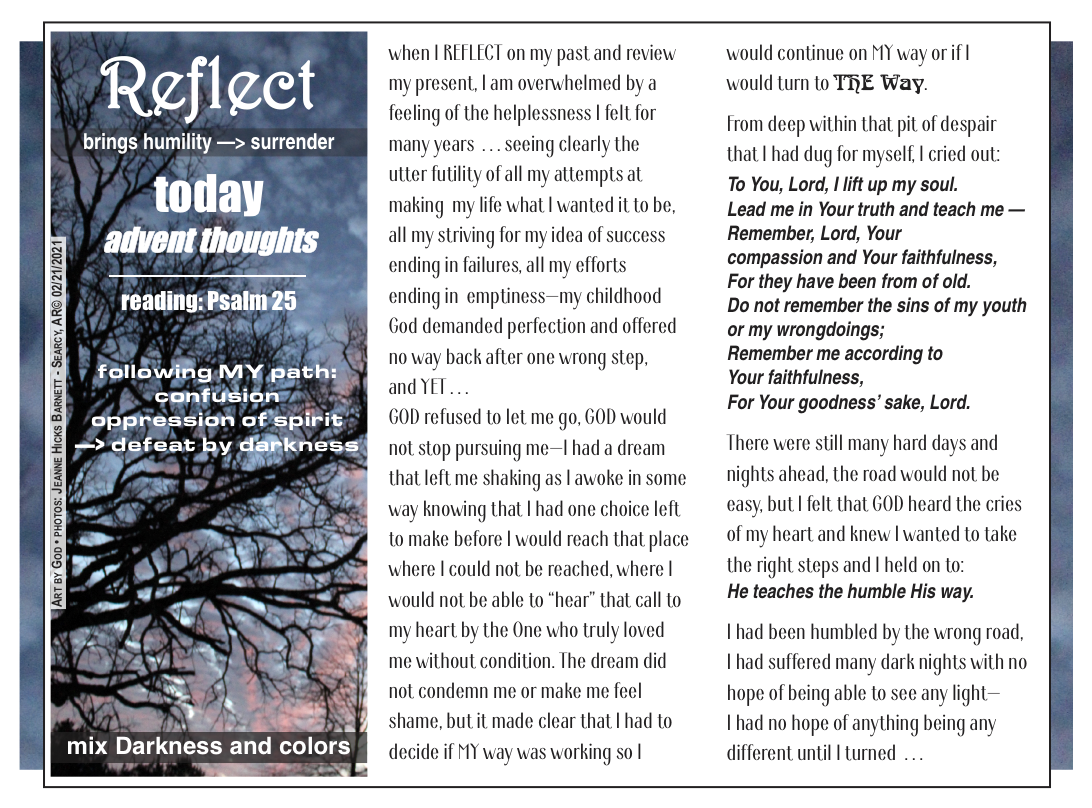 I believe that every moment of each life path (the good & what I perceive as the bad) God works together for my good as His child whether I understand it or not. MUSIC and MINISTRY are still primary aspects of the path God has me walking—so exciting!