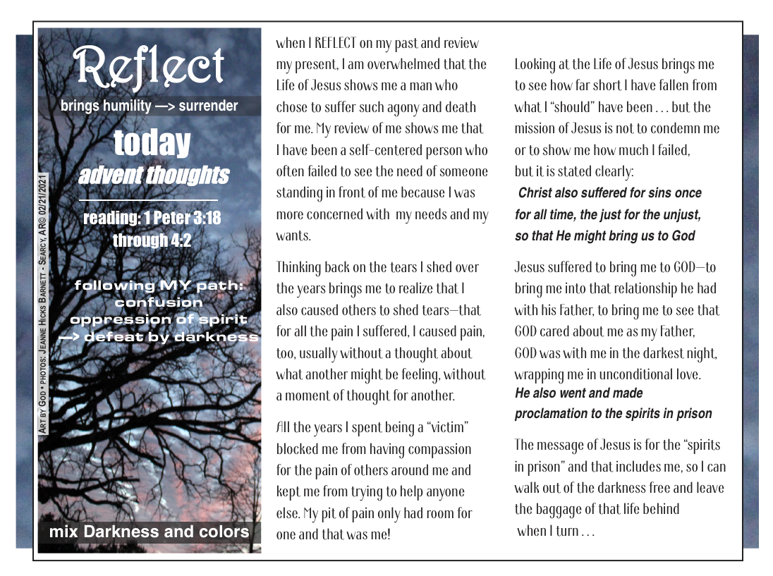 Words that have encouraged me since 1980: ". . . giving them a garland instead of ashes,The oil of gladness instead of mourning,The mantle of praise instead of a spirit of fainting So they will be called oaks of righteousness,The planting of the LORD, that He may be glorified." Isaiah 61:3