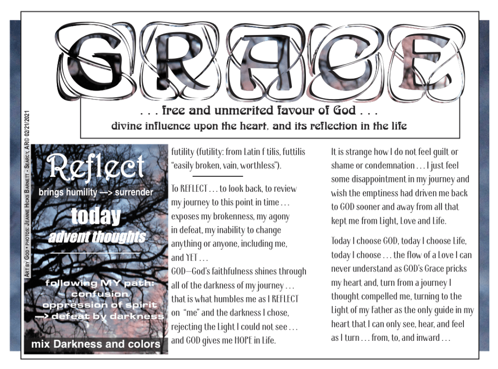 a work in progress . . . God's grace has brought me through many traumas of varying intensities and I am alive today (both physically & spiritually) because of Him and His work: "For I am confident of this very thing, that He who began a good work in you will perfect it until the day of Christ Jesus"-Philippians 1:6.